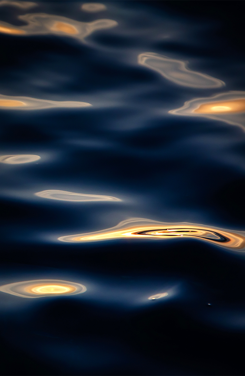 These photographs are my attempt to hold onto those fleeting patterns and the sudden moments where light and water come together, then vanish forever and never again to be repeated
